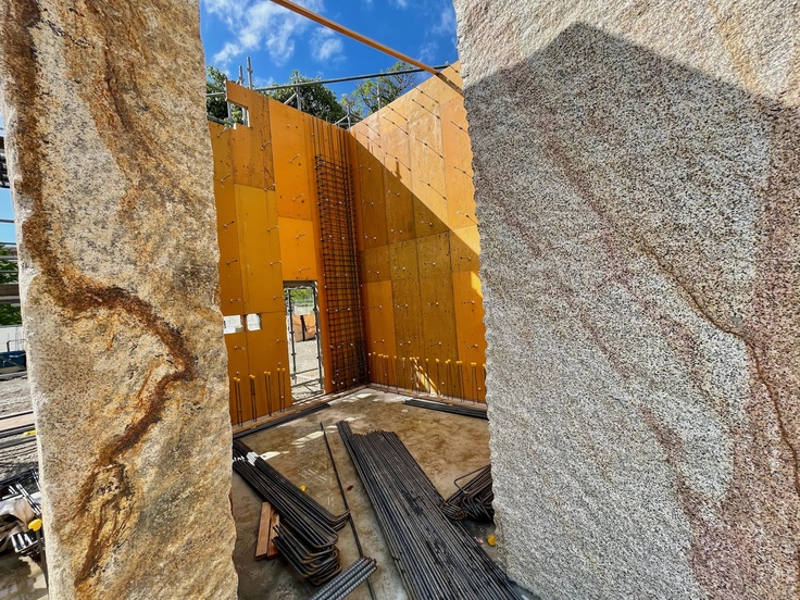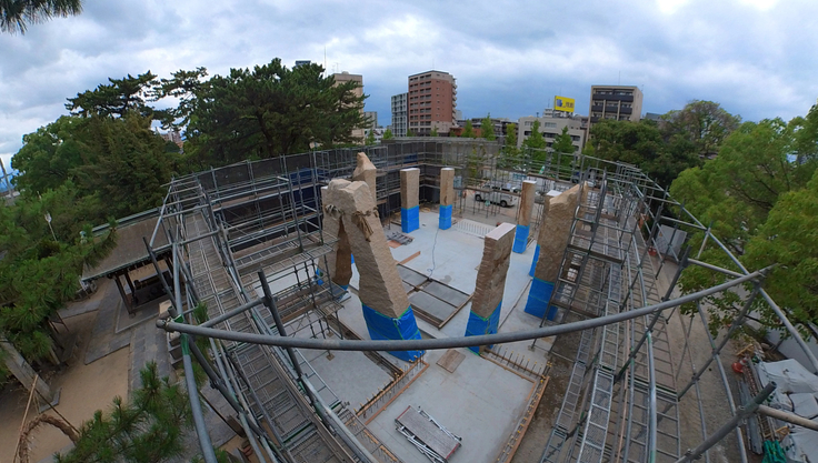 ふと昨年の今自分の当宮はどんな感じか写真をあさってみると、拝殿の石柱が建ち、壁面の工事に入っているところでした。