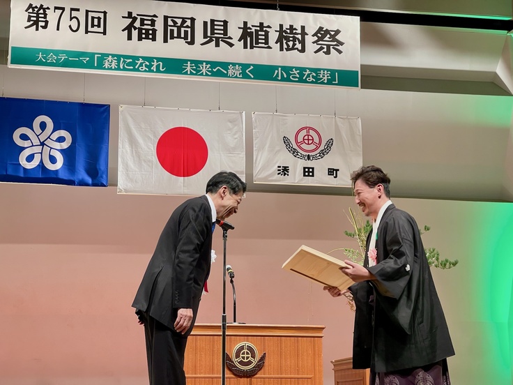 11月9日、福岡県添田町で開催された第75回福岡県植樹祭の中で行われた「第10回福岡県木・木質化建築賞」の授賞式に参加してまいりました。