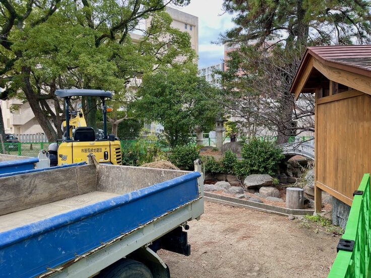 お子様の遊び場となっていた放生池周りは、ご覧の通り松林へと変わりました。