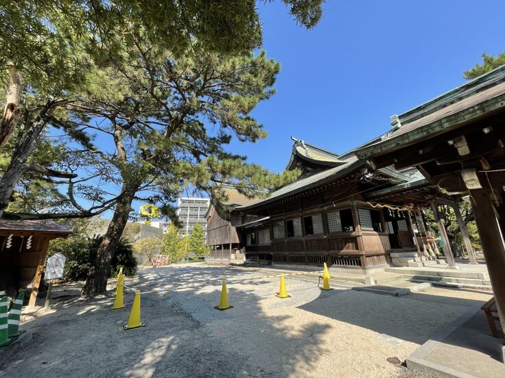 神社周辺は以前百道浜の一部で砂浜と松林が並ぶ地帯でした。