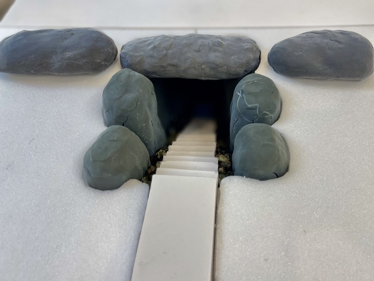 巨石に囲まれた中に、地下に伸びる階段があります。