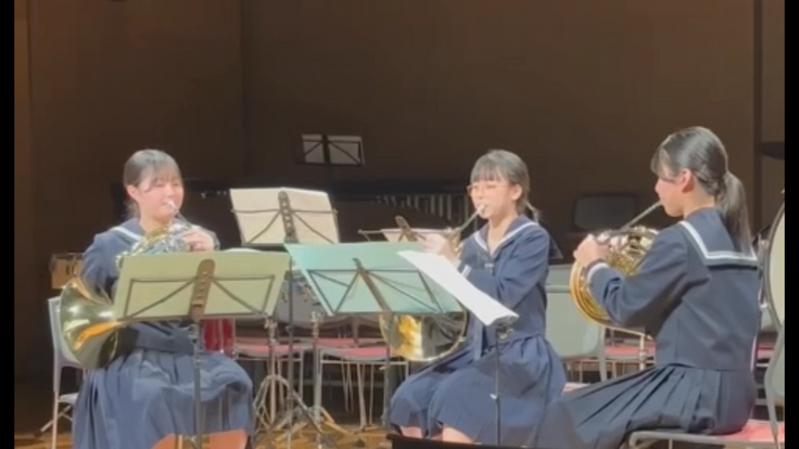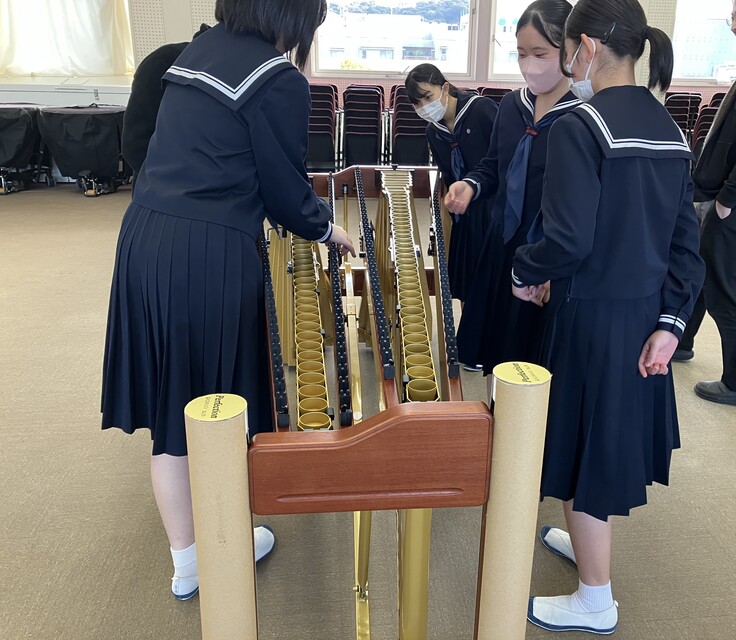 そして、先日(2月22日)、ご支援いただきました方々への感謝の気持ちを込めて、吹奏楽部員による演奏と打楽器奏者の冨士原あやさん(本校卒業生)をお迎えし「マリンバ・ホルンお披露目コンサート」を開催しました。【会場:かるぽーと龍馬学園イベントホール(小ホール)】