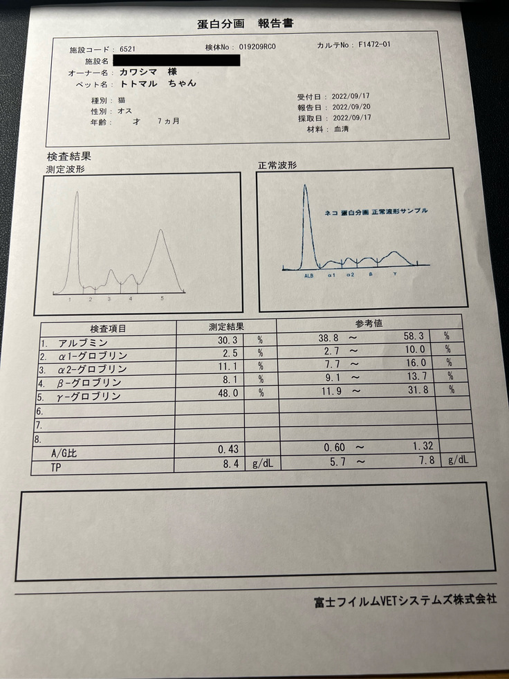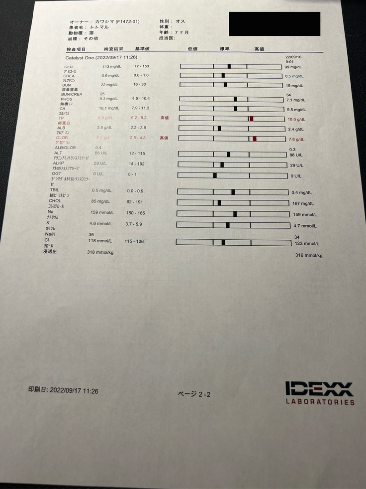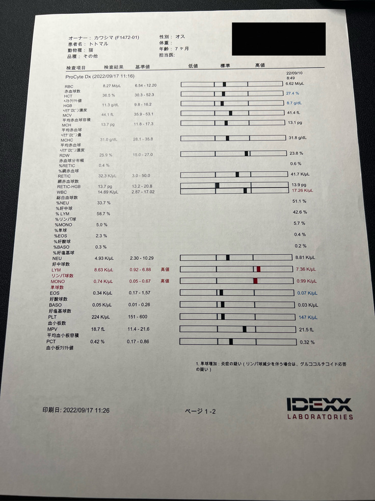 9月17日の各種検査結果報告が返ってきました。