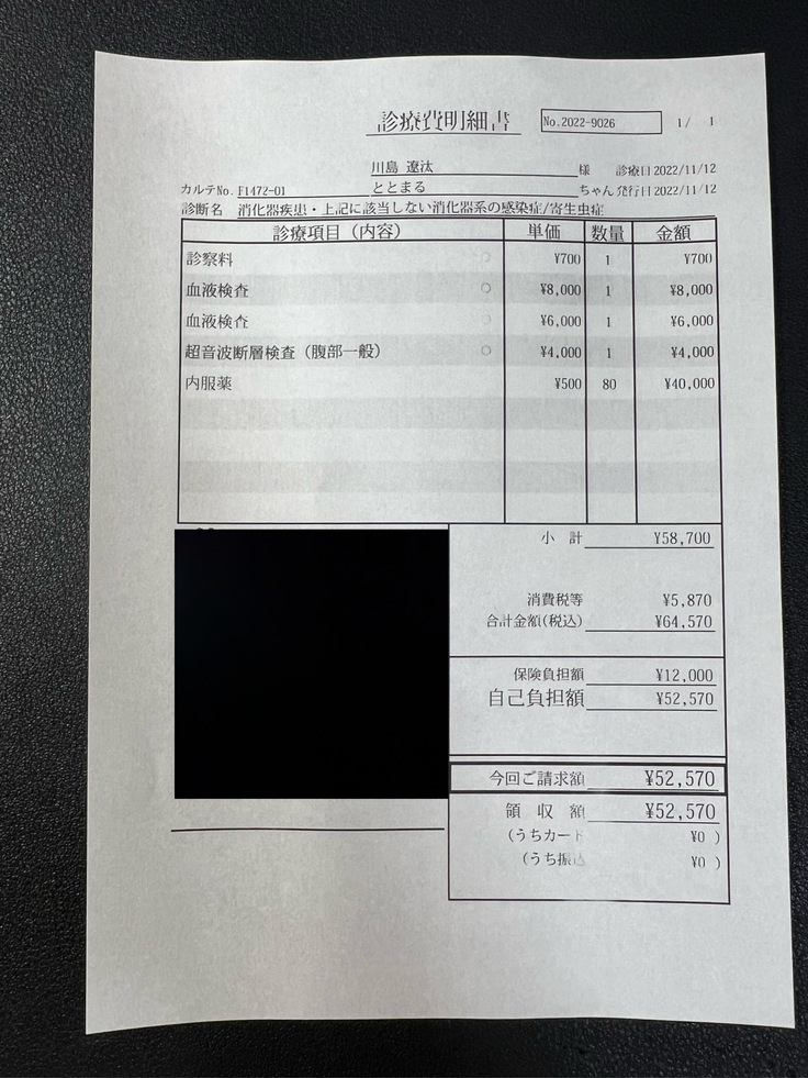 11月12日に受けました検査の診療明細をご報告させて頂きます。