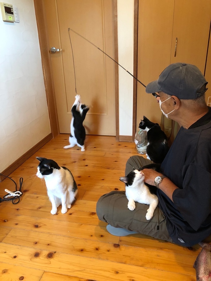 ご高齢になり、猫たちのことをお世話できなくなる前にと、5匹の子たちをととの森に入学させました。