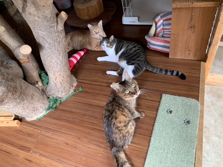 老猫、猫エイズキャリア、猫白血病キャリア、好酸球性肉芽腫などの子が、部屋分けされて、暮らしています!
