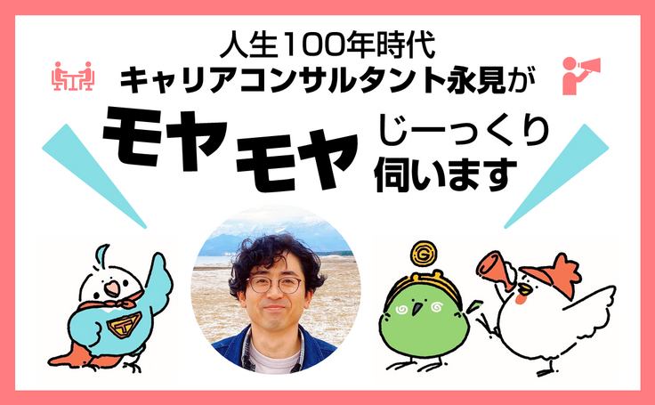 人生100年時代。キャリアコンサルタント国家資格を持つ、現役キャリア相談員の永見さんが、あなたのモヤモヤをじーっくり伺います。