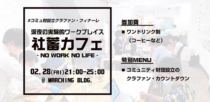 クラファン・フィナーレは『社蓄カフェ』で、クラファン終了の23時を一緒にカウントダウンしましょう。ぜひお立ち寄りください。