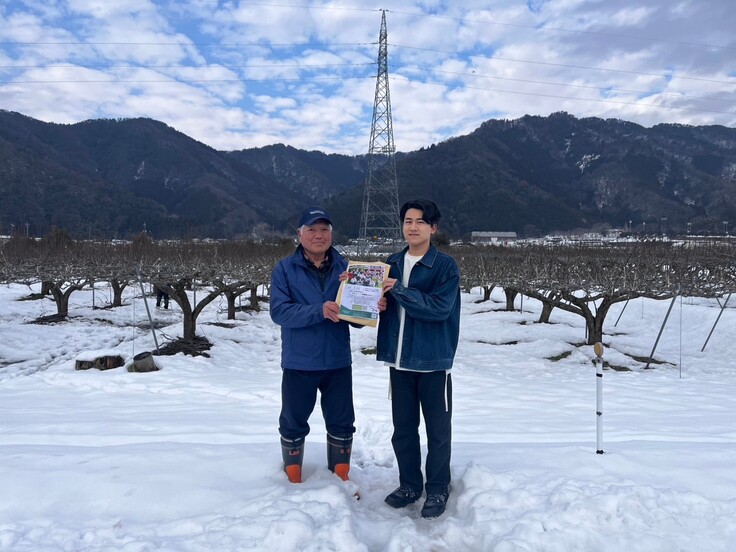 八頭町のはっとうフルーツ観光園で梨園をされている中屋史男様に、本プロジェクトのチラシをお渡しに伺いました。はっとうフルーツ観光園の梨園は、本プロジェクトの参加団体である結梨が、作業のお手伝い先として定期的にお伺いしている園の一つです。
