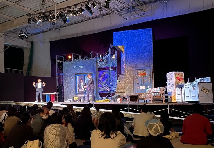 ・舞台と客席がバリアフリーになっていて、舞台に観客も上がり一緒に同じ空間で楽しめる劇でした