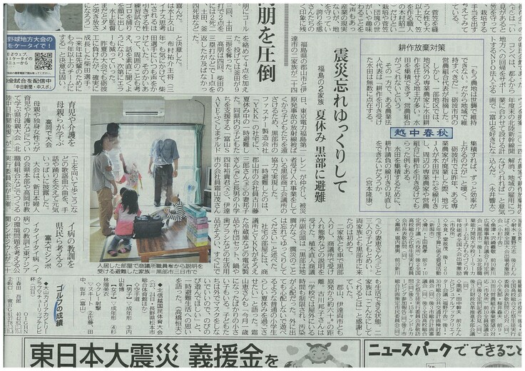 過疎と震災からの復興に共通点があるのではないかと考え、一般社団法人 富山SAVEふくしまチルドレンの活動に賛同し参加しています。 支援とは、小さな想いの積み重ねです。 一人でも多くの方の心に届くよう、力を尽くしてまいります。