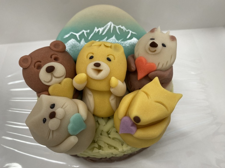 立山をバックグラウンドに、かわいい動物がいくつも並んでいます。とても微笑ましいですね!