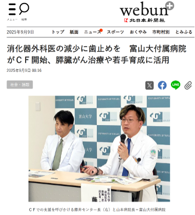 100万円のご寄付|「膵がん治療の開発」と「消化器外科医の育成」の挑戦を支える