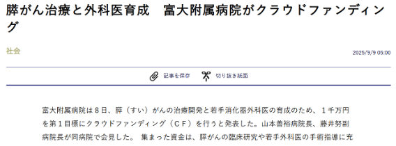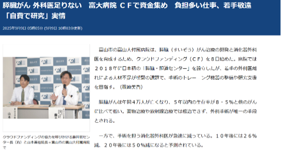 1万円のご寄付|「膵がん治療の開発」と「消化器外科医の育成」の挑戦を支える