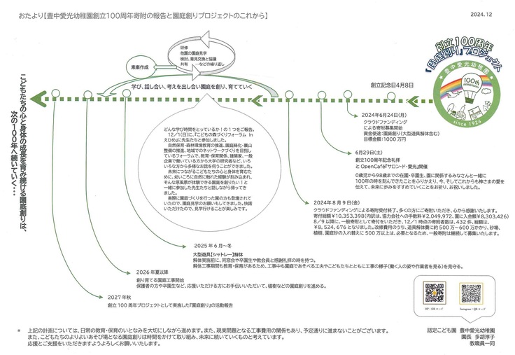 【豊中愛光幼稚園創立100周年寄附の報告と園庭創りプロジェクトのこれから】
