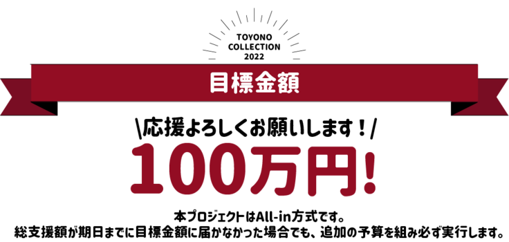 今回のクラウドファンディングを通して、より多くの皆様にTOYONO COLLECTIONの魅力を感じていただき、温かいステージを一緒に作る経験をしてもらいたいと思っています。今回のプロジェクトが成功することを心より応援しています。