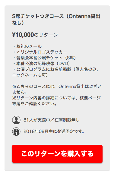 S席チケットつきコース(Ontenna貸出なし)