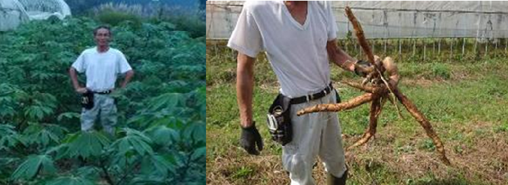 一昨年、それらのブラジル人から、自分たちの主食であり、タピオカの材料としても有名な、キャッサバを作ってくれないかという話があり、気乗りはしませんでしたが、試験的に作ってみたところ、休耕地のようなやせた土地でも栽培が可能で、農薬や肥料も必要とせず、立派に育つことがわかりました。