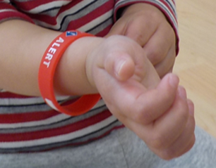 保育士さんの目からは、長袖を着ているときは服の上からつける為すべり難く取れにくいという利点がありますが、柄物や同系色の服の上からだとあまり目立たなくなってしまうなという感じがしたとのことです。また、手洗いの際には濡れてしまうので、バンドをした低月齢のお子様には保育者が付いてバンドを持ちあげて濡れないように洗うか、濡れた後しっかり拭いてあげるなどの対応が必要となりそうとの感想をいただきました。