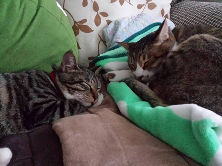 初めての猫は12年ほど前に偶然ホームセンターで貼り紙を見て譲ってもらったてんちゃん、2匹目は7年前にツキネコから譲渡してもらったここあ(ボンネットから保護された、ツキネコ名ボンネット)