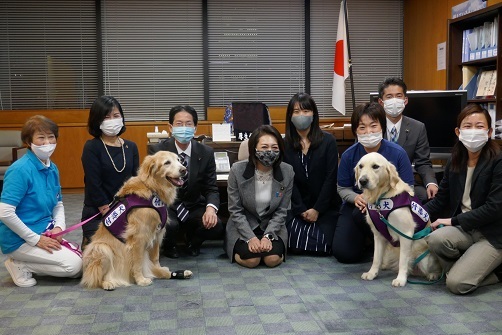 12月には三原じゅん子厚生労働副大臣をNPO法人神奈川子ども支援センターつなっぐのみなさんと共に表敬訪問し、付添犬についてご説明させていただきました。