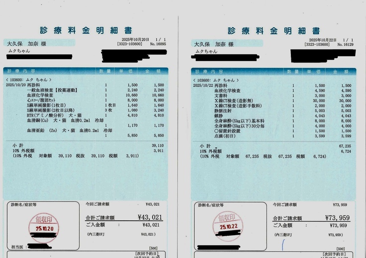 ページ上に掲載している診断書や診療明細書などの資料は全て動物病院から掲載の許諾を得ております。