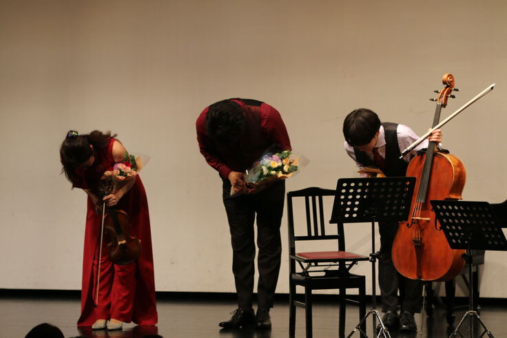 ・とても素敵なメロディーを聞かせていただくことができました。3人の奏でる演奏は曲によって表情を変え、特別な空間を作り出していました。勉強や研究、課題から追われる世界から隔絶した時間を過ごせました。ありがとうございます。