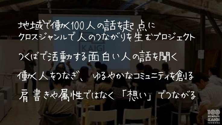 “つくば市内を拠点に活動する方々をゲストにお迎えし、自らの仕事や取り組みについてお話いただきます。つくばに住んでいる方、つくばで働いている方、つくばのことが大好きな方、つくばが気になっている方、つくば?どこにあるの?これを機にはじめて行ってみようかな?という方などなど…みーんなご参加いただけます!”