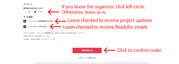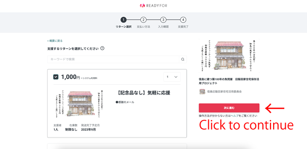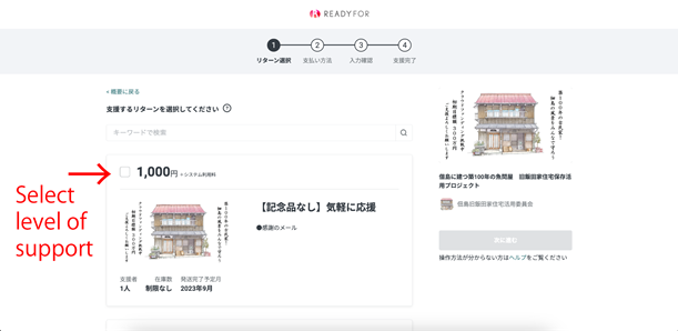 ④ Click here and Confirm your level of support – please click here for English details on backer rewards