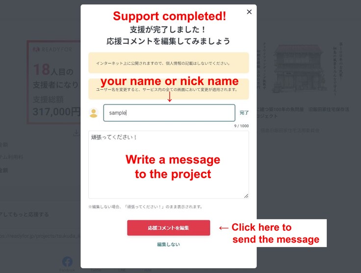 Thank you for your interest in this project. This page explains how to support our project from computer. Please refer to the following page for details about this crowdfunding challenge.