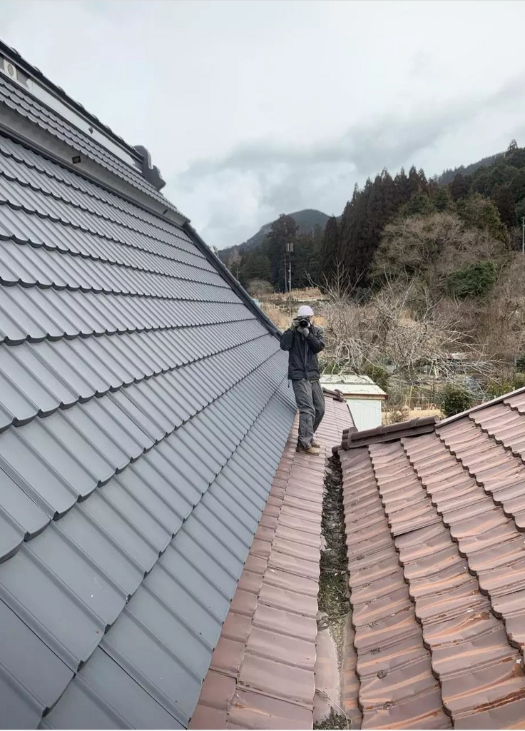 真ん中にみえる黒っぽい筋が雨漏りや屋根の傷みの原因となっていそうとのことでした。