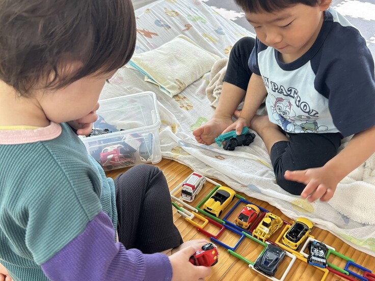でも、保育士と一緒にお部屋を見て回って、好きなおもちゃを見つけたり、お友達と交流していくうちに、表情がだんだんやわらかくなっていきます。