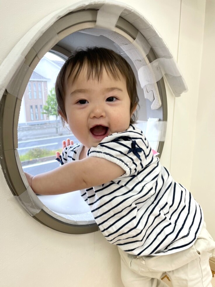 隣のお部屋のおともだちと目が合ってニッコリ!