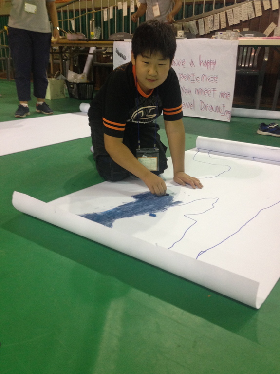 2014年世界フリースクール大会で自分の等身大の絵を描く(韓国)