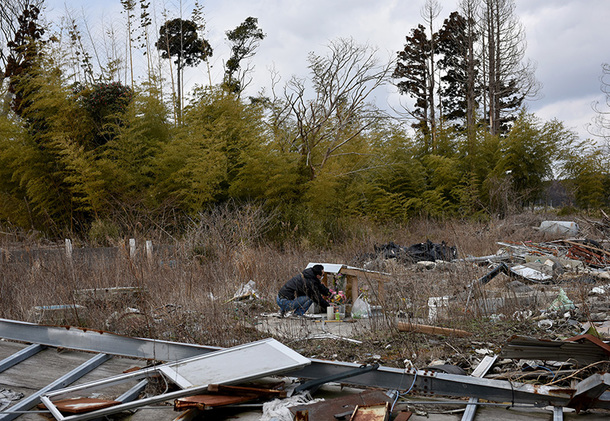 奥様とまだ赤ちゃんだったお孫さんが行方不明となっている男性のもとに行かせていただきました。この場所も原発事故により今も許可なしでは入れない場所です。毎月月命日に来て、おふたりを捜していいらっしゃいます。ここ最近、双葉町の沿岸部は工事がかなり進んできました。いいことではありますが、いまだ見つかっていない方たちを捜すことのできる場所が少なくなっていることも意味しています。