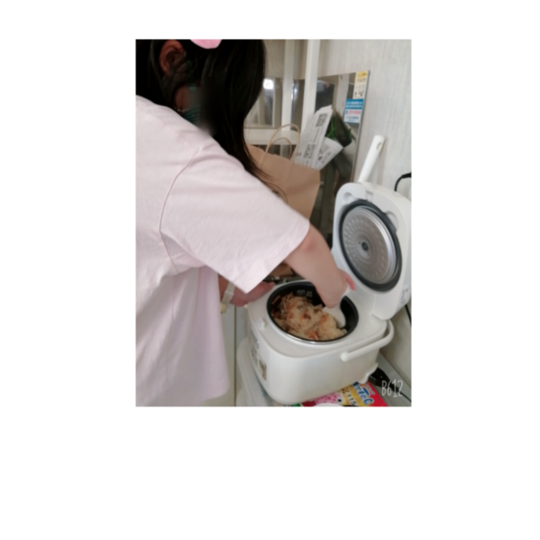 この日の昼食は「炊き込みご飯・味噌汁・サラダ」