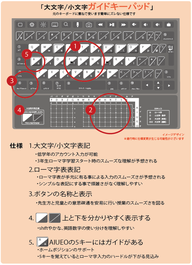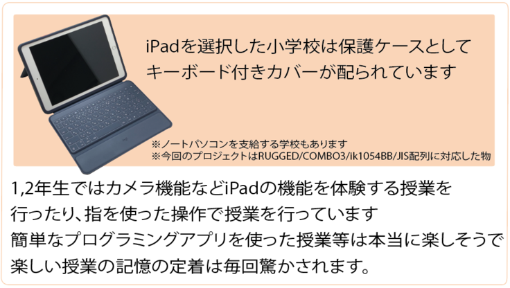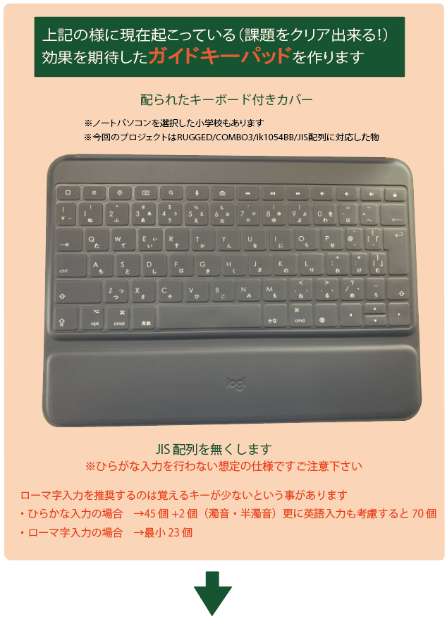 (今回のプロジェクトはiPad用キーボードに対しての対策ですが小学校へ支給されている他機器に対応したキーパッドも順次対応したいと考えています)