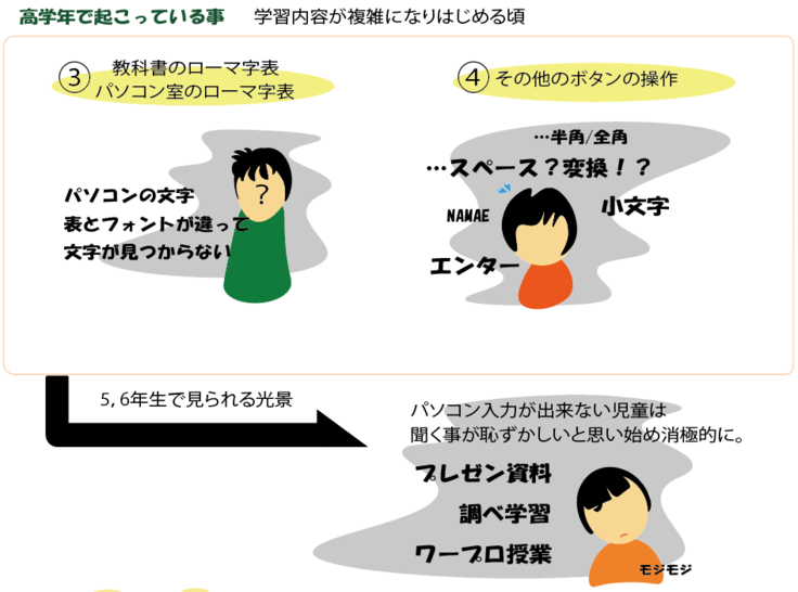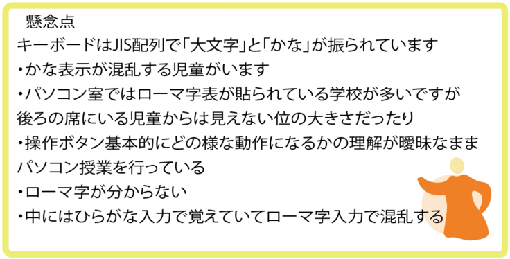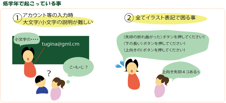 アルファベットや数字の入力は低学年には大きな壁となっています。