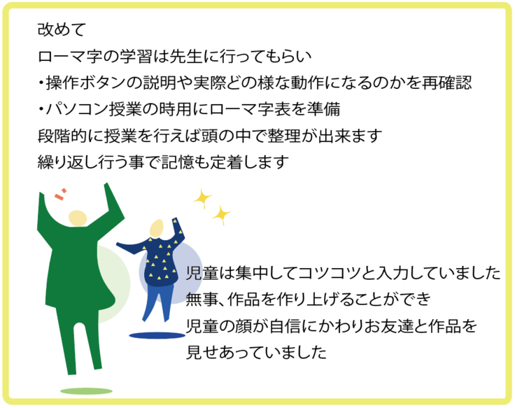 パソコン授業をとても楽しみにしている児童はとても多いと感じます。