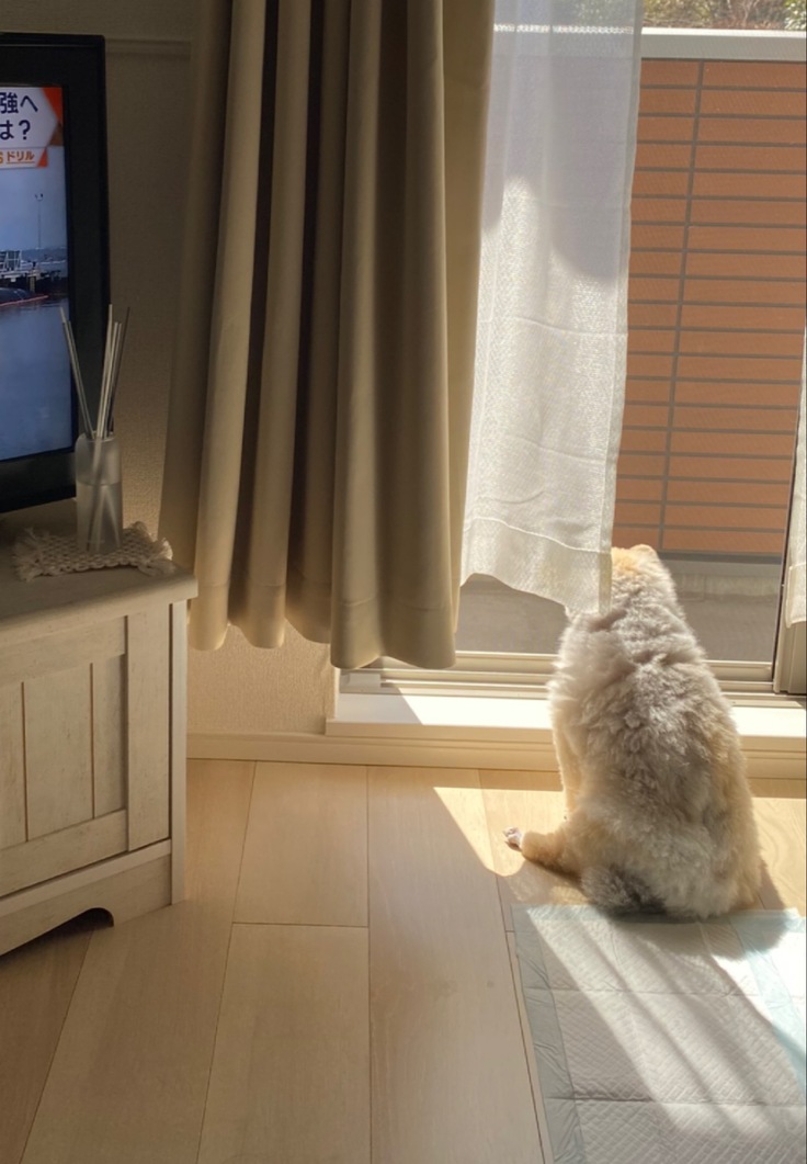 晴れた日は日の当たる場所に行き、お家では日向ぼっこをするのが好きなつーたんです。