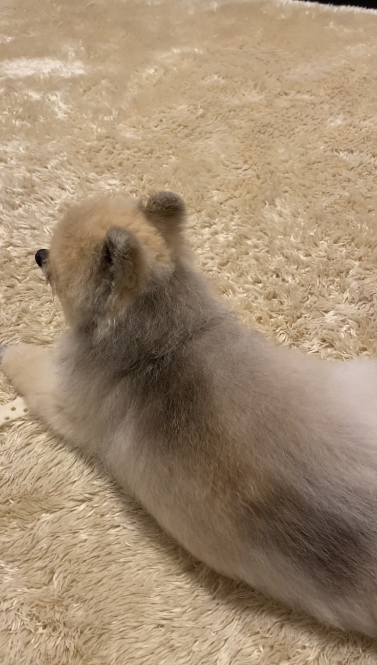 洗いたての物や新品が大好きなつーたんは仕上がりが終わると、真っ先に上に乗り具合をチェックします。