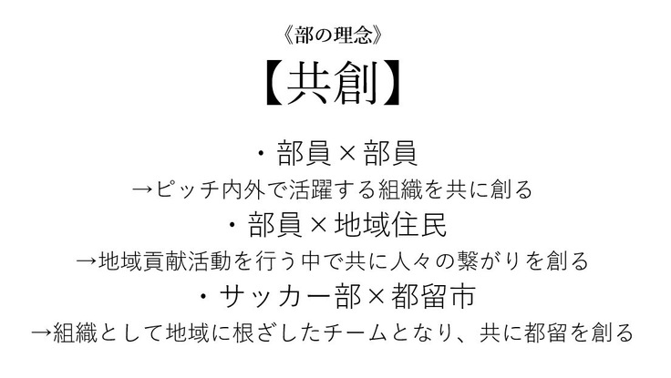この想いを強く持って、部員一同新たに設定した組織理念のもと、地域に根差した組織として、ピッチ外でこれから更に活動してまいります。