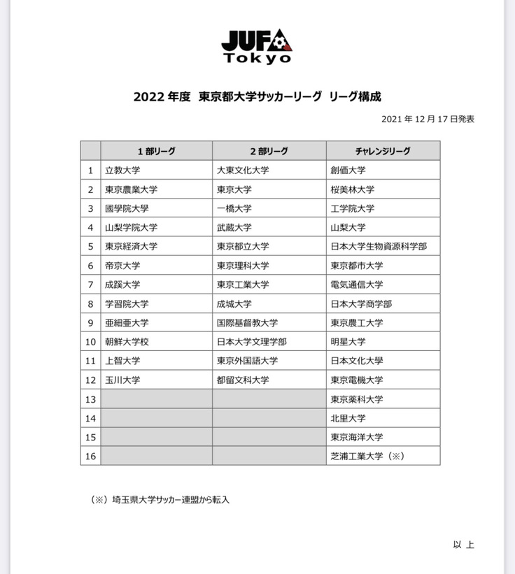 どうか今回だけの縁ではなく、我々都留文科大学体育会サッカー部の今後にご注目いただければと思います。
