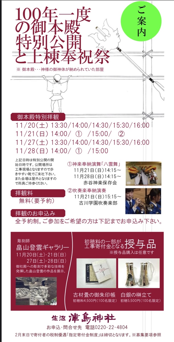 100年に一度の機会となりますのでお誘い合わせの上御参拝下さい。特別公開は要予約です。