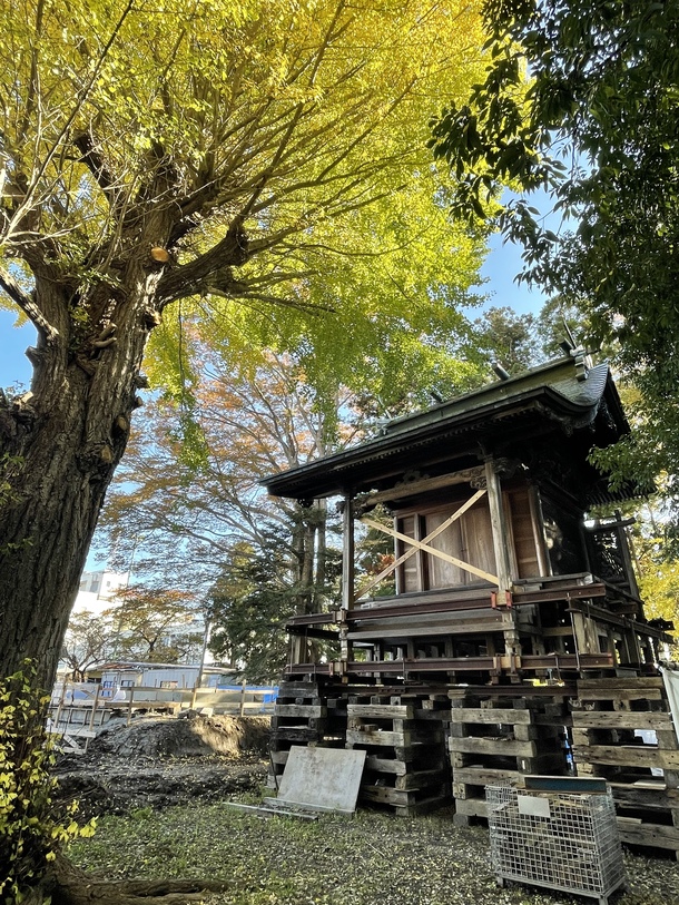 以前の神社の場所から3メートル後に下がった場所へ曳家をします。時間を作れそうな方がいましたら、見に来て下さい