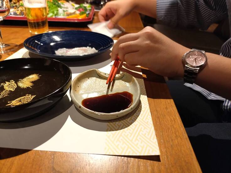 お皿の片方が凹んでいるので、醤油がお皿いっぱいになる事もありません。