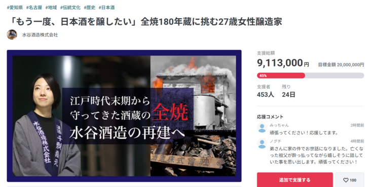 【応援したい!】水谷酒造株式会社様のプロジェクトをご紹介