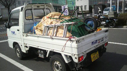 (現場に資材機材を満載して行きます。)