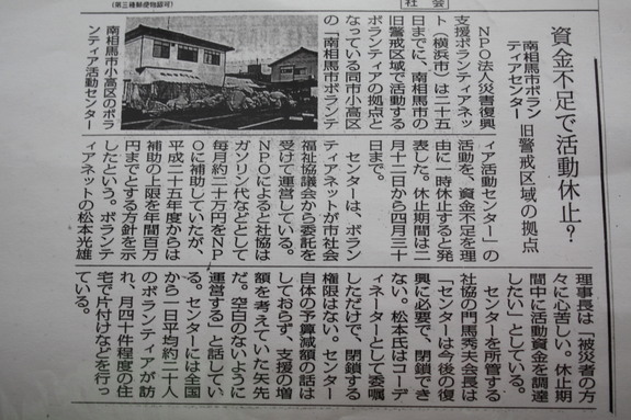 小高区は、(来4月の病院が診療を開始し、5月に高速が開通し、)2018年4月が居住禁止の規制解除の予定です。まだ1年半あります。何とかそこまで軽トラック3台の維持をしたいと考えています。期間ギリギリまで支援をお願いしたいと思いますので、南相馬の状況をご存じない方や、各地のボランティアに行かれた方や、福島にゆかりのある方などに、情報の拡散のご協力もお願いします。