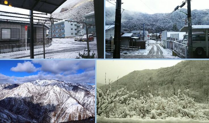 足尾町の一足早い厳しい冬、町中と広大な自然